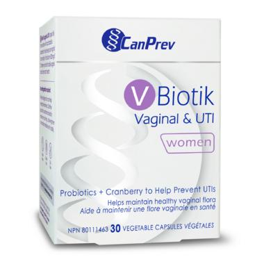 V Biotik Vaginal & UTI is a source of probiotics to help support vaginal health. Helps restore and maintain healthy vaginal flora. Cranberry helps prevent urinary tract infections (UTIs).