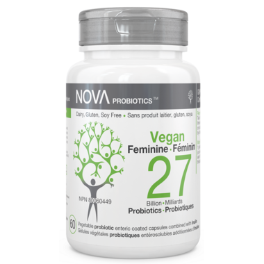 NOVA Probiotics VEGANย Feminineย was formulated for women and their specific needs regardless of age. With 27 billion live microorganisms per capsule, it helps restore and maintain a healthy balance of beneficial bacteria to support digestive and vaginal health. Its combination of essentialย 4 strains of the Lactobacillus genusย has many benefits for women.