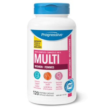 Progressive 100% Complete MultiVitamin for Adult Women addresses the nutritional needs of a "normal" modern lifestyle. For those who do not exercise regularly, who experience average stress, and are not constantly on the go, Progressive MultiVitamins for Adult Women is the perfect fit. This improved formula features a complex of supporting nutrients designed to address Womens health needs, including promoting healthy estrogen balance. These supporting nutrients include DIM, Chastetree and Maca.