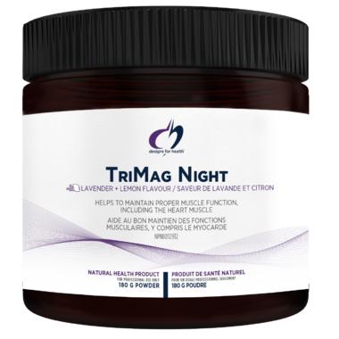 TriMag Night is a unique blend of three highly absorbable forms of magnesium along with relaxation-supportive botanicals. One serving provides 300 mg of elemental magnesium in an easy-to-mix powder. TriMag Night has a delicious lavender and lemon flavour, and it is sweetened with stevia.