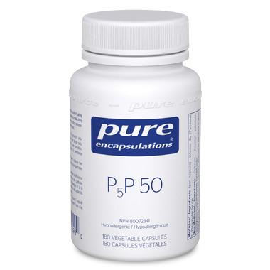 Pure Encapsulations P5P 50 (Pyridoxal-5'-phosphate) is the active metabolite of pyridoxine and is the predominant form of plasma B6. P5P is required for proper absorption of B12 and magnesium, and for the production of gastric HCl.