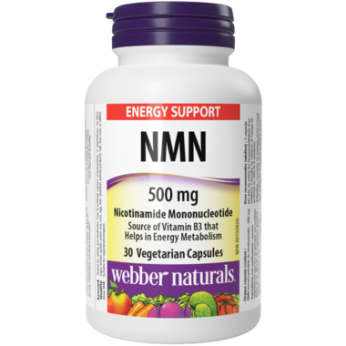 NMN 500 mg from Webber Naturals provides vitamin B3 in its active form, ready to help in energy metabolism, tissue formation, nutrient metabolism, and the maintenance of good health. NMN (nicotinamide mononucleotide) is a precursor to NAD+ (nicotinamide adenine dinucleotide) that helps maintain NAD+ levels in the body for the maintenance of good health. Unlike other forms of vitamin B3, NMN is active right away, which means more efficient maintenance of NAD levels. This one-per-day, vegan-friendly formula provides 500 mg of NMN to support good health and energy metabolism.